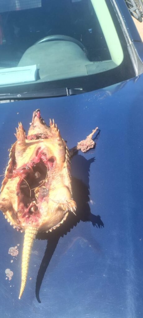 Un llamado al 911 activó un operativo en La Dormida. En el lugar se constató la presencia de un armadillo eviscerado.