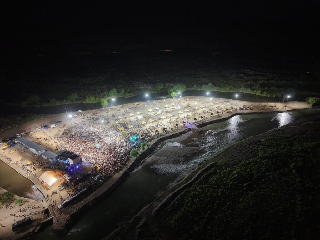 Nuestro drone sobrevoló el predio “Chicho Astorga” para contemplar la multitud que asistió, inicialmente a disfrutar de las aguas del río Atuel, y más tarde para cantar y bailar de la mano de Grupo Kenay, Los Playeros y Parecidos Djs.