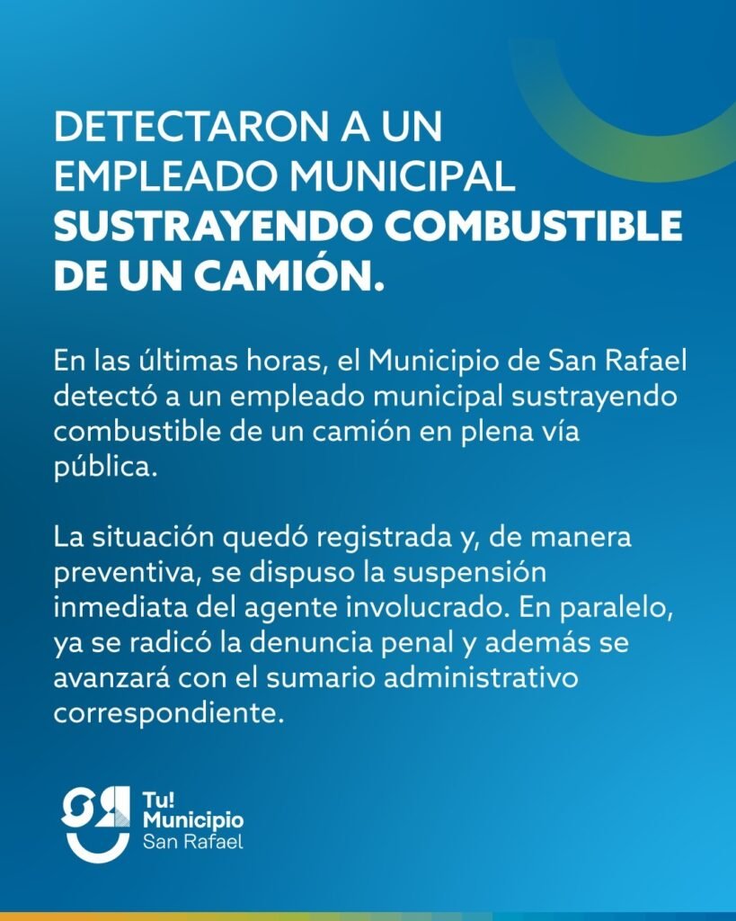 En las últimas horas, el Municipio de San Rafael detectó a un empleado municipal sustrayendo combustible de un camión en plena vía pública.