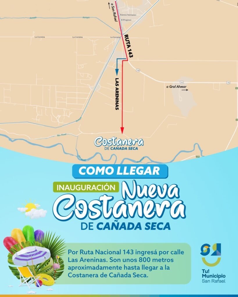 Este domingo, con una gran fiesta popular, el Municipio de San Rafael dejará inaugurada la costanera de Cañada Seca, un extenso predio bañado por las aguas del rio Atuel y en el que sanrafaelinos y turistas podrán acceder, sin cargo, a quinchos, sombrillas, churrasqueras y estacionamiento, además de acceso a energía eléctrica e iluminación led.
